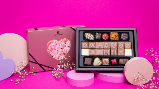 Wybierz figurkę, która nawiązuje do pasji ukochanej osoby, personalizowane pralinki ze zdjęciem lub ChocoTelegram z Twoją wiadomością i zachwyć drugą połówkę czekoladową niespodzianką.