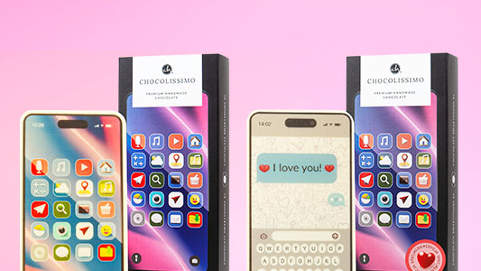 Ręcznie wylewany czekoladowy smartfon z jadalnym nadrukiem, zapakowany jak prawdziwy model XL. Zaskakujący prezent, który robi efekt WOW i pokazuje, jak dobrze znasz swoją drugą połówkę.