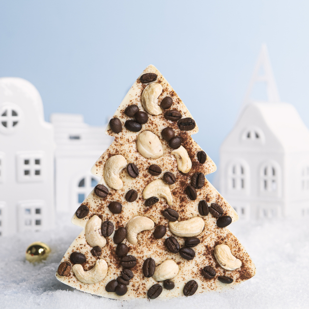 Podaruj swoim bliskim wyjątkową choinkę z białej czekolady z dodatkiem kawy – niebanalny prezent, który zachwyci smakiem i elegancją.
