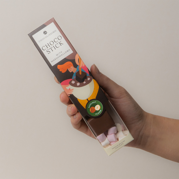 Mleczna belgijska czekolada najwyższej jakości z dodatkiem wyrazistego orzechowego smaku połączona z pysznymi piankami marshmallow w formie Chocosticka to doskonały sposób na rozgrzewkę w chłodne wieczory. Wystarczy zanurzyć ją w gorącym mleku, aby uzyskać aksamitny, kremowy napój o idealnym balansie słodyczy i delikatnego orzechowego akcentu. To szybka i pyszna chwila przyjemności, która otula smakiem i dodaje odrobiny elegancji codziennemu relaksowi.