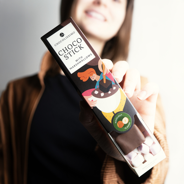 Każdy ChocoStick Orzechowy jest pakowany ręcznie tuż przed wysyłką, dzięki czemu zachowuje maksymalną świeżość i pełnię smaku. Całość zamknięta w eleganckim, artystycznym opakowaniu – dopracowanym w każdym detalu, idealnym zarówno jako prezent, jak i chwila przyjemności tylko dla siebie.