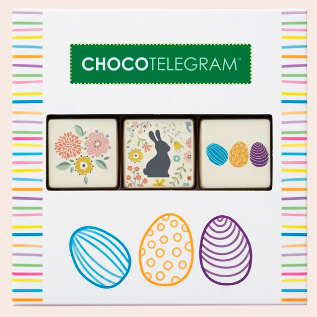 Zestaw trzech czekolad z wielkanocnym nadrukiem – słodka tradycja w eleganckim wydaniu