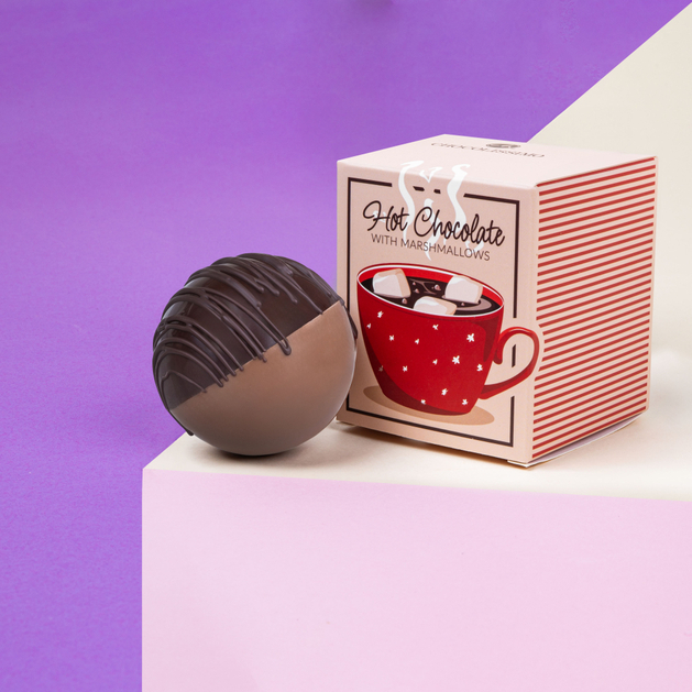 Podaruj sobie lub bliskiej osobie wyjątkowe chwile przy gorącej czekoladzie dzięki naszej czekoladowej kuli z piankami marshmallow. Połączenie aksamitnej belgijskiej mlecznej i deserowej czekolady najwyższej jakości z delikatnymi piankami tworzy prawdziwą ucztę dla zmysłów. Produkt powstaje w pracowni Chocolissimo, a każda kula jest ręcznie przygotowywana i pakowana tuż przed wysyłką, aby zapewnić maksymalną świeżość i intensywny smak. Całość zamknięta jest w uroczym, pudełeczku naszej produkcji – idealna propozycja na prezent dla dzieci, przyjaciół lub ukochanej osoby.