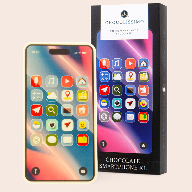 Czekoladowy smartphone powstaje ręcznie w pracowni Chocolissimo, pod okiem doświadczonych czekoladników, wyłącznie z najwyższej jakości białej belgijskiej czekolady. Starannie uformowany kształt telefonu oraz dopracowane, jadalne detale przyciągają wzrok i sprawiają, że całość zachwyca precyzją wykonania, stając się wyjątkowym, słodkim dziełem sztuki.