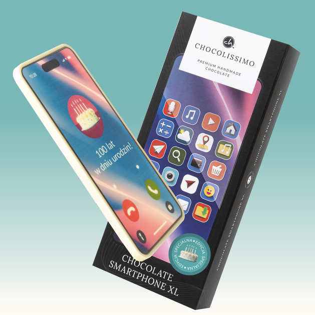 Smartphone z czekolady na urodziny „100 lat” to oryginalny i efektowny upominek, który łączy nowoczesny design z klasycznym, radosnym przekazem. Ten wyjątkowy czekoladowy smartphone na prezent urodzinowy powstaje ręcznie w pracowni Chocolissimo, pod okiem doświadczonych czekoladników, wyłącznie z białej belgijskiej czekolady najwyższej jakości. Każdy egzemplarz tworzony jest bezpośrednio przed wysyłką, co zapewnia maksymalną świeżość oraz doskonały, aksamitny smak.