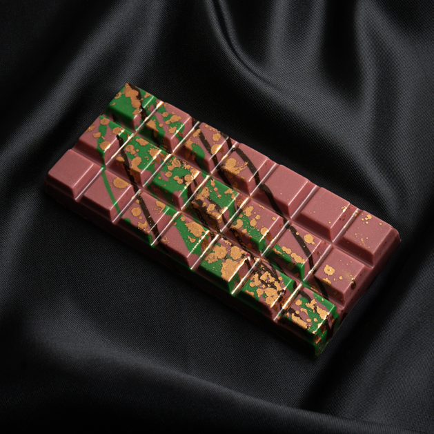 Całość oblaliśmy naturalnie różową belgijską czekoladą ruby, która wybornie komponuje się z niepowtarzalną strukturą oraz smakiem pistacjowego wnętrza. Dzięki starannie dobranym składnikom, każdy kawałek to prawdziwa eksplozja smaku, którą warto odkryć w najlepszym wydaniu.