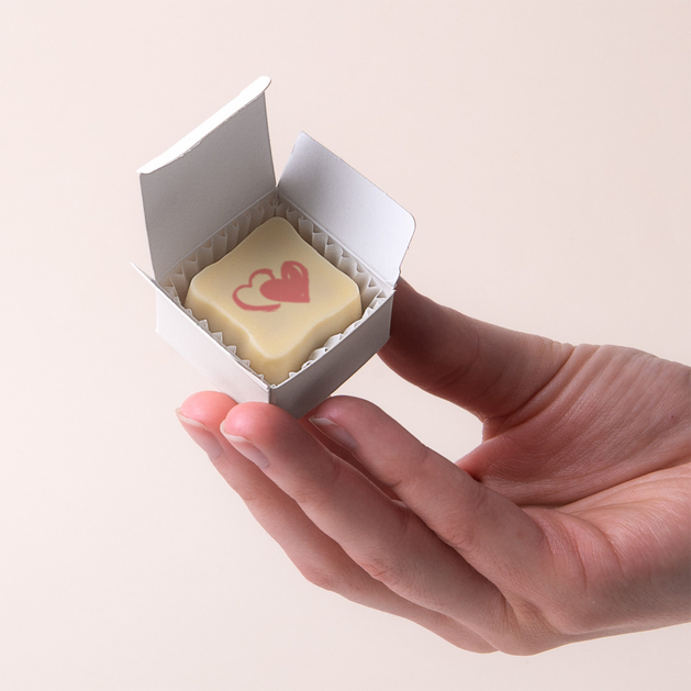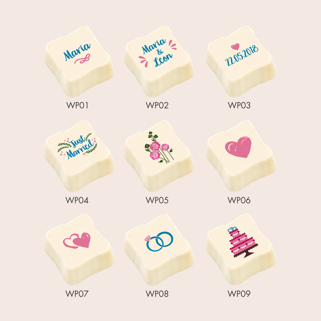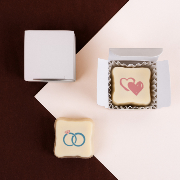 Możliwość wyboru nadruku na pralince sprawia, że jest to świetny pomysł na ozdobienie stołu podczas uroczystych przyjęć zaręczynowych, weselnych czy rocznicowych. Czekoladka będzie także doskonałym pomysłem na podziękowanie gościom weselnym. Pralinkę zapakowaliśmy w elegancki, biały kartonik.