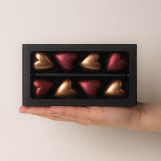 Te 8 pralin w kształcie serc z karmelem to harmonijne połączenie smaku, estetyki i emocji – słodki gest, który mówi więcej niż słowa i pozostaje w pamięci na długo.
