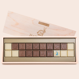 Szukasz idealnego prezentu na Wielkanoc? Nasza drewniana szkatułka wykonana z egzotycznego drewna Okoumé, ozdobiona wielkanocnym motywem, skrywa 4 wyjątkowe pralinki wykonane z najwyższej jakości belgijskiej czekolady, stworzonych pod okiem najlepszych europejskich czekoladników. To doskonały sposób, by podarować bliskim odrobinę czekoladowej przyjemności i sprawić, aby te święta były jeszcze bardziej niezapomniane.