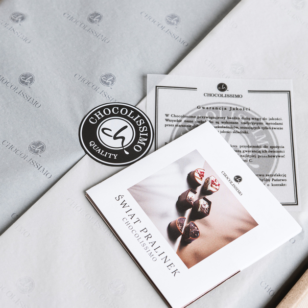 Każda pralinka tworzona jest ręcznie w pracowni Chocolissimo, a następnie starannie pakowana tuż przed wysyłką. Dzięki temu trafia do Ciebie w idealnej kondycji – świeża, pełna smaku i gotowa, by zachwycać od pierwszego kęsa.